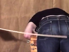 Caned over tight jeans Daddy boy